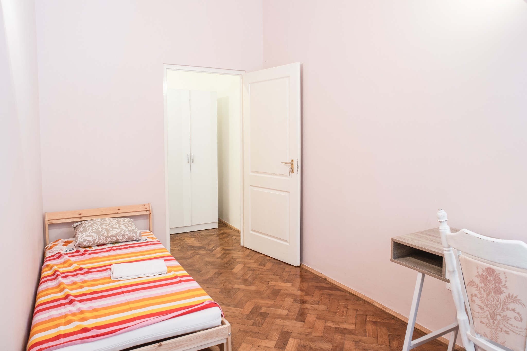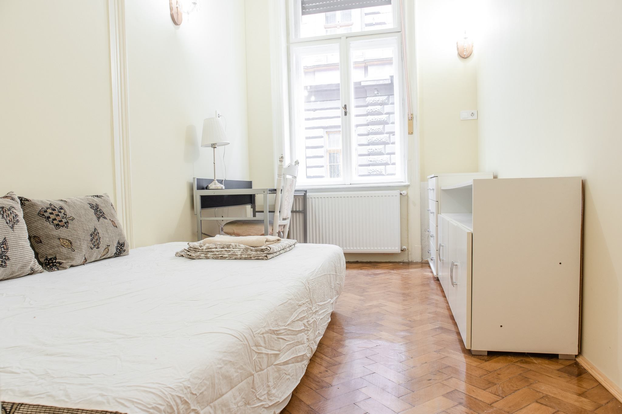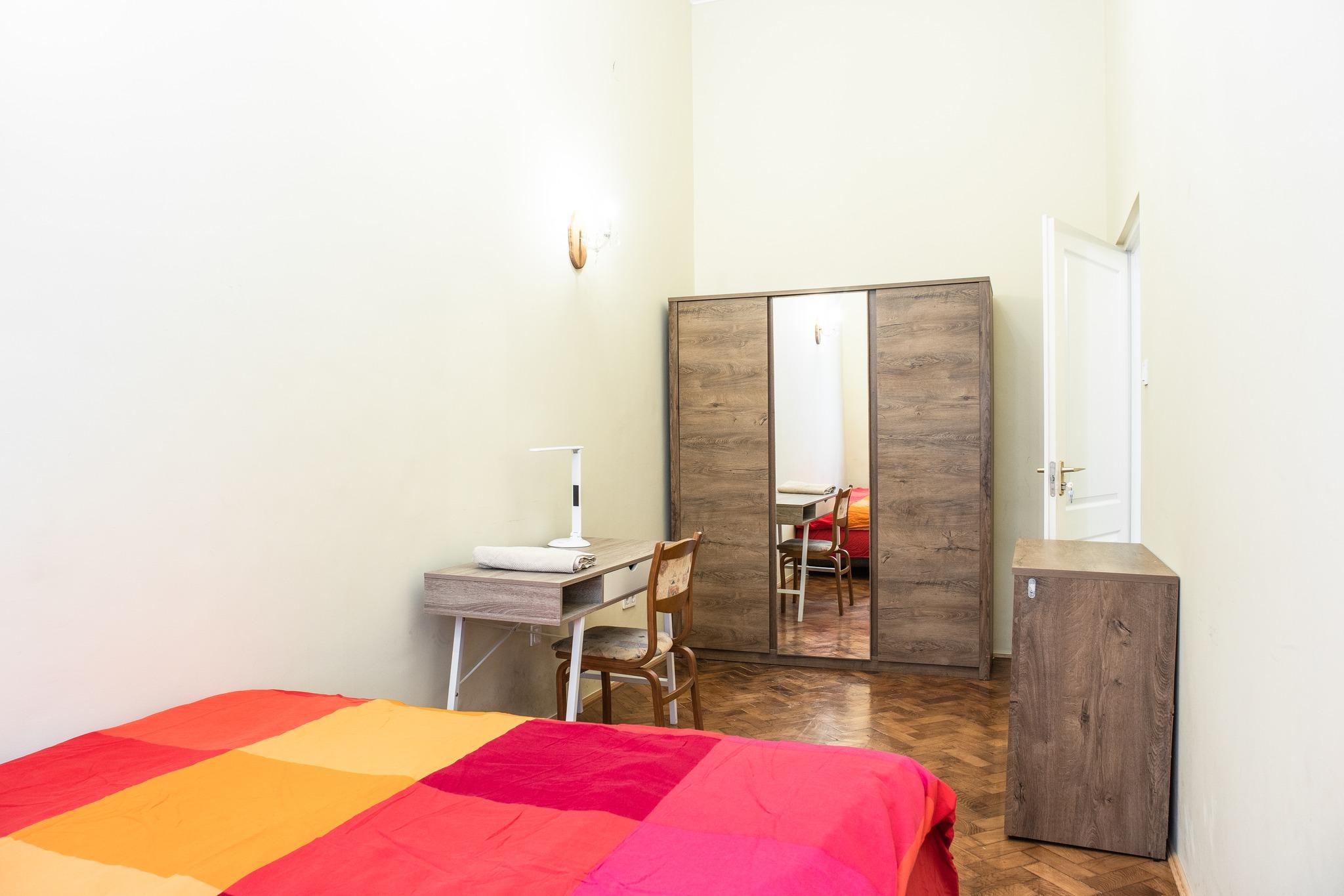 Welcome to our huge and furnished flat right in the 8th District. The cozy flat comes with 4 single bedrooms, 2 with single beds, 2 with double beds, 1 bathroom and 1 toilet. Our Vas utca flat is centrally located at Pest side fo Budapest. Its location makes the Apartment perfectly attrative as it is right next to the Palace District and the main mains of public transport: tram 4-6.
