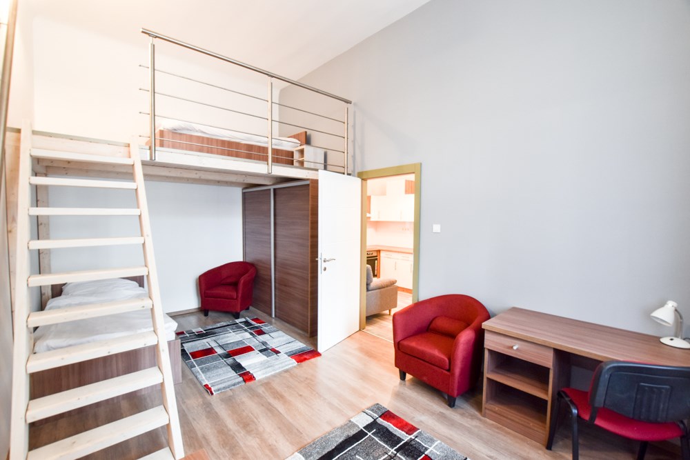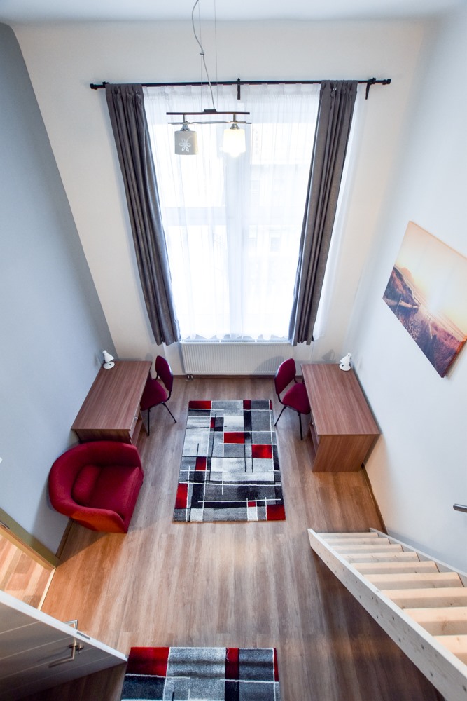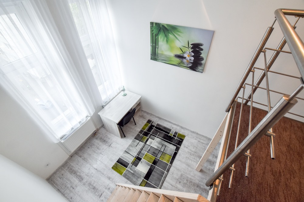 Welcome to this little hidden gem in the heart of the city. Ferenc krt Studio has a welcoming and cosy vibe with its modern style. The flat is equipped and furnished. Downstairs it has a huge place for the kitchen, living room and bathroom, and as we go up, you can find the bedroom and a small wardrobe with a comfortable sofa in it. Right next to metro line M3, Tram 4-6, several bus lines.