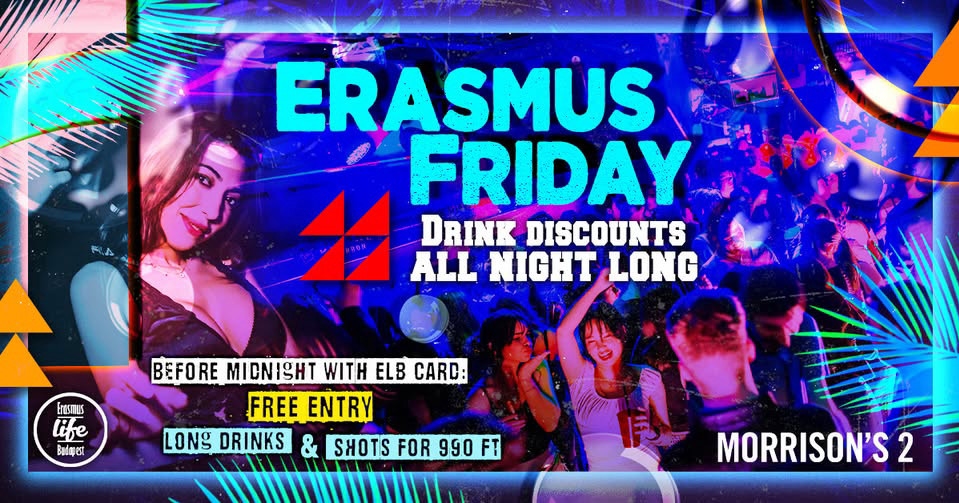 💥 Your new Friday plan is right here! FREE with ELB Card till midnight, and discounted entry all night long if you follow @erasmuslifebudapest on Instagram!