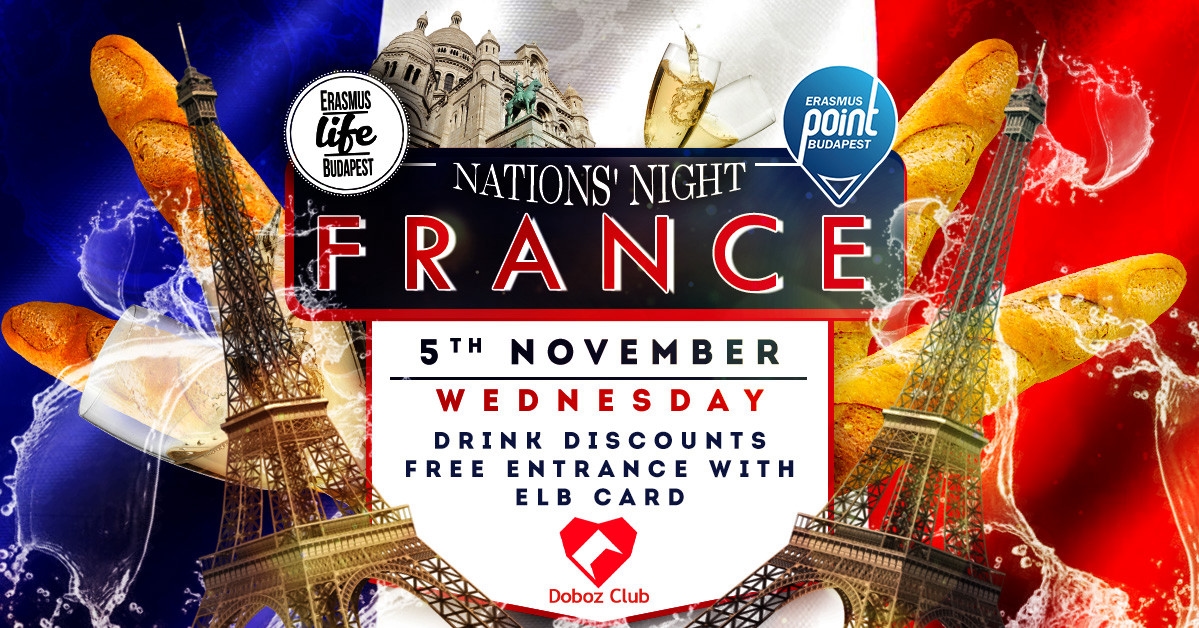 Viens profiter d’une soirée internationale Erasmus avec des étudiants du monde entier ! Déguste des boissons traditionnelles françaises 🍹 et danse sur de la musique française ainsi que sur les meilleurs hits internationaux!💃